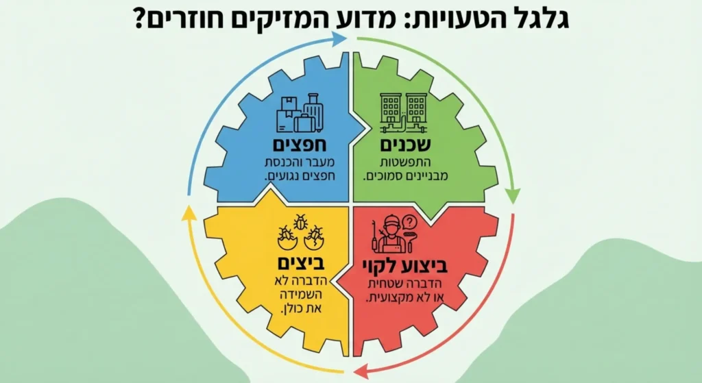 דמיינו שהבית עבר חיטוי מלא, אך אתם מכניסים אליו "סוס טרויאני" בדמות חפץ שעדיין נושא עליו פשפשים או ביצים. זו טעות נפוצה שנובעת מחוסר מודעות. פשפשים לא חיים רק במיטה; הם יכולים להסתתר כמעט בכל מקום. לפני שמחזירים חפצים לחדר המטופל, יש לוודא שכל אחד מהם נקי וטופל.